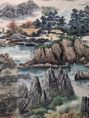 [다이어그램과 어마산수] 시리즈는 전통 동양화 이미지의 구조를 해체하고 재조합함으로써, 익숙하지만 낯선 흐름을 보여준다. 수집된 이미지 조각들은 화면 위에서 서로 연결되거나 충돌하며, 통계처럼 축적된 시각적 데이터로 작동한다. 그렇게 수집된 그림들은 작가의 시선 아래 데이터처럼 분류되고 배열되며 설계되었다.
